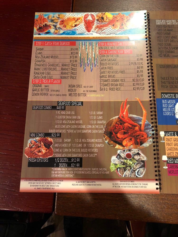 Comes with 1 piece of king crab leg, 1 cluster of snow crab leg, 1/2 lb. of shrimp, 1/2 lb. of clams, 1/2 lb. of New Zealand mussels and 1/2 lb. of crawfish. Also comes with Cajun sausage, corn on the cob, boiled potatoes, serve with our signature Cajun sauce. No substitutions.